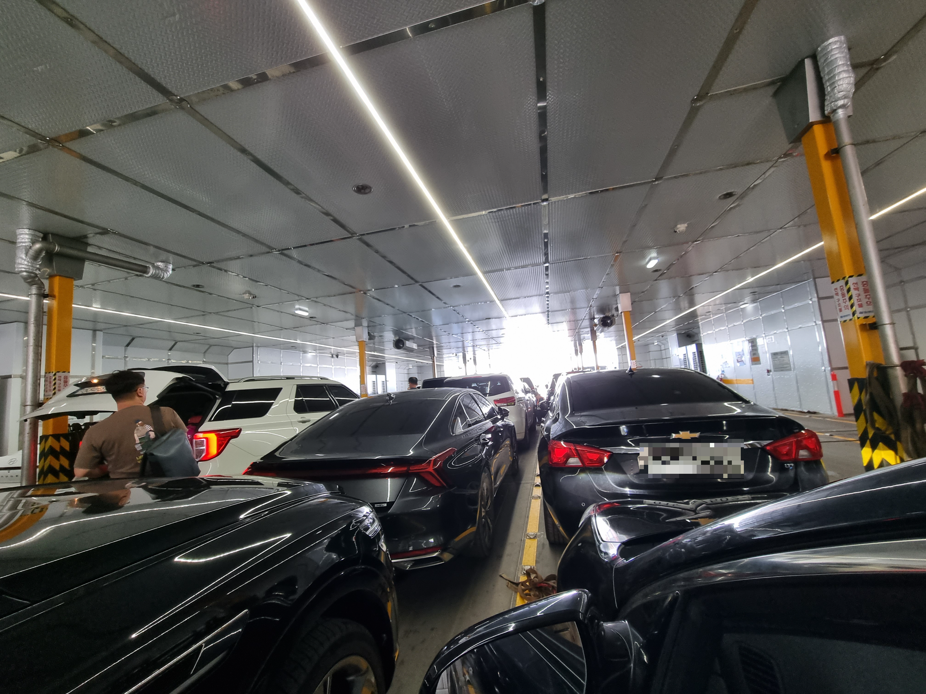 나중에 도착해서 배에서 나갈 때에는 먼저 들어왔던 차량 먼저 순서대로 앞으로 나가게 됩니다.